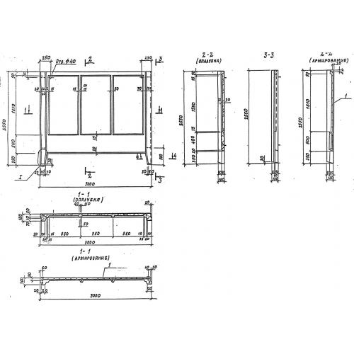 1ПБ 30.20  Плита бетонная (панель ограждения) Серия 3.017-3.